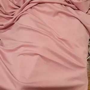 Polyester and spandex, stretches well