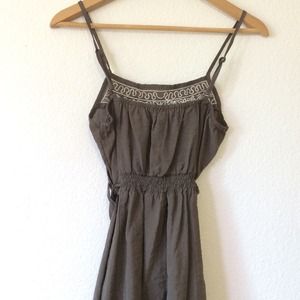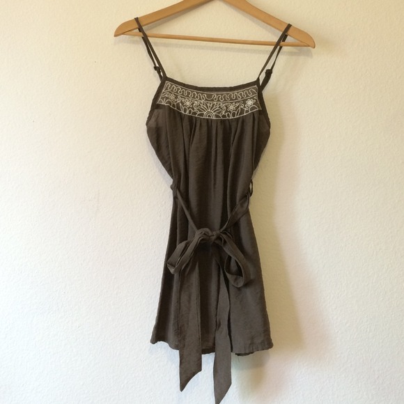 A cute grayish-brownish tank top. Has a waist tie and adjustable straps. It's a loose top but it looks small bc of the waist tie REASONABLE OFFERS ACCEPTED