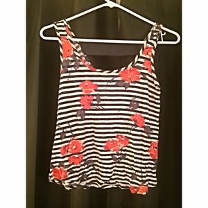 Cute and comfortable tank top. Floral/Stripe design with an elastic band on the back, shown in the forth picture. Great for summer or spring.