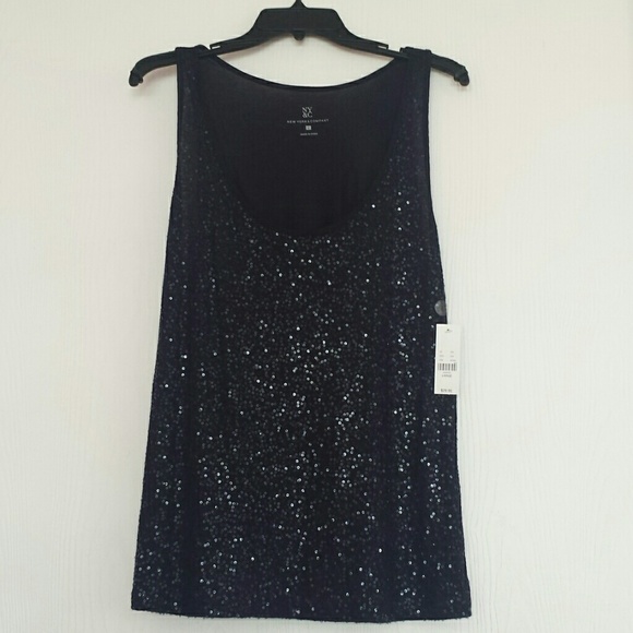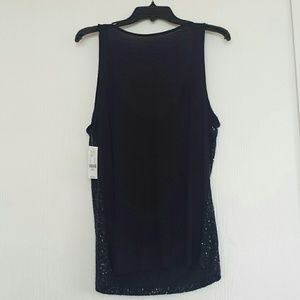 Beautiful Navy Blue, small sequins, tank top. BRAND NEW! Stretchable back fabric. Looks great with white jeans for a date night or girls night out.
