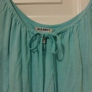 Cute mint green tank with tie on top and ribbed band on bottom. Has built in bra too. Only worn a couple times