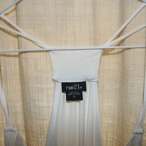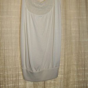 Beaded cream colored double strap tank.