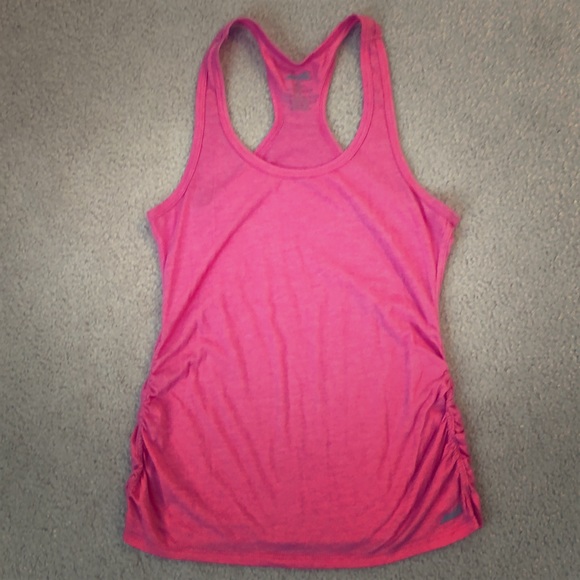 Razorback tank top with cinched waist on the sides.
