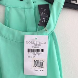 Purchased from the Nordstrom store! This top has never been worn and still has the tags. I bought it and it got lost in my closet. This is a lightweight top that is cut higher in the back than front. See photos for the cute button detail on the back of this top. Color is spearmint and perfect for the summer!