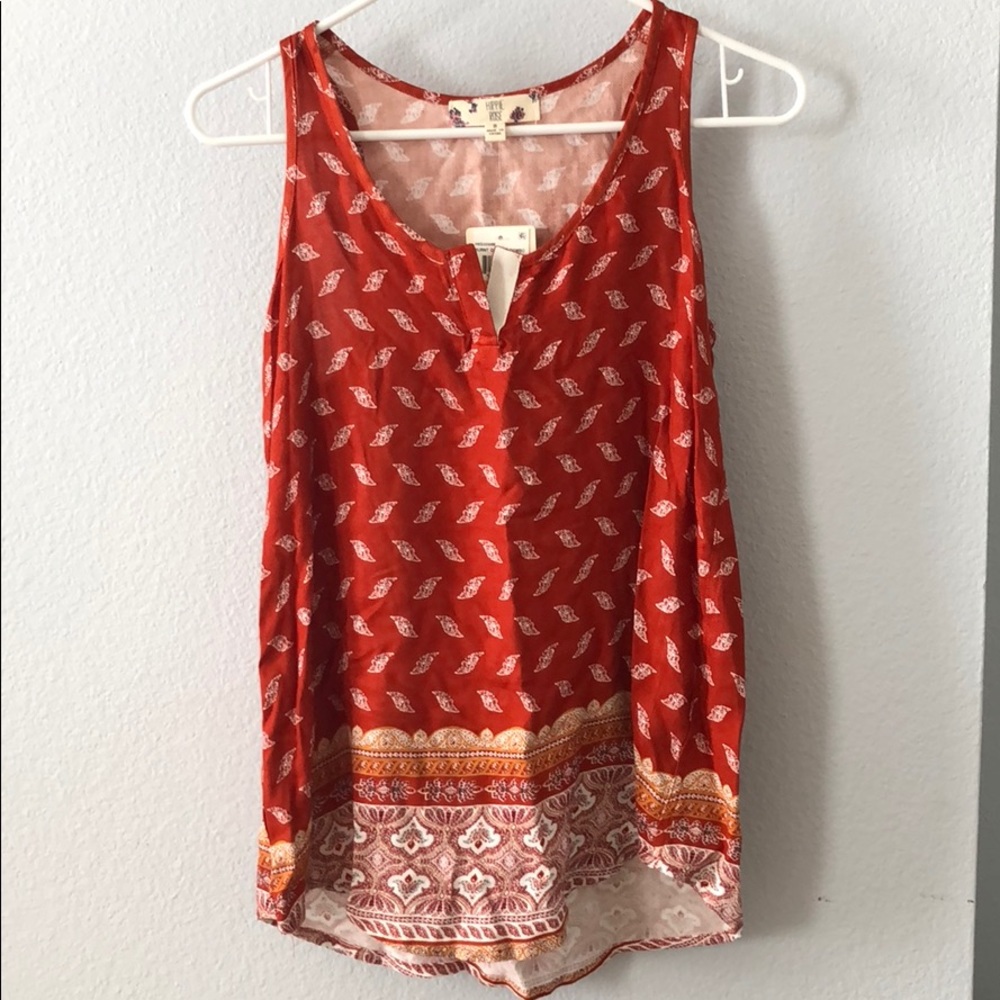 Patterned burnt orange/deep red color. Soft tank top!