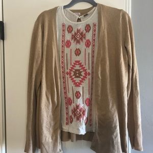 This tank has only been worn once. It’s cute and can also been worn with a light sweater in the fall!