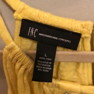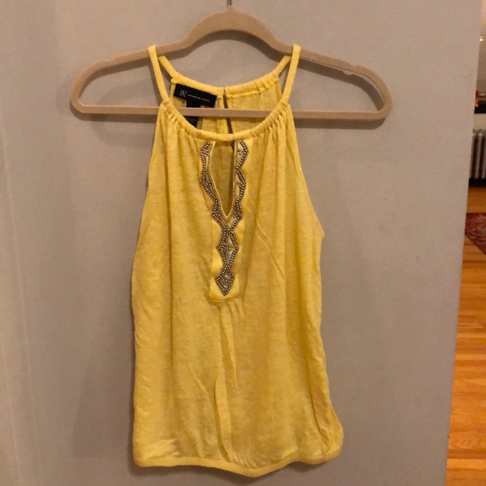 International Concepts yellow tank top, with key hole opening and beading.
