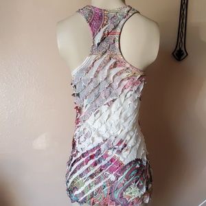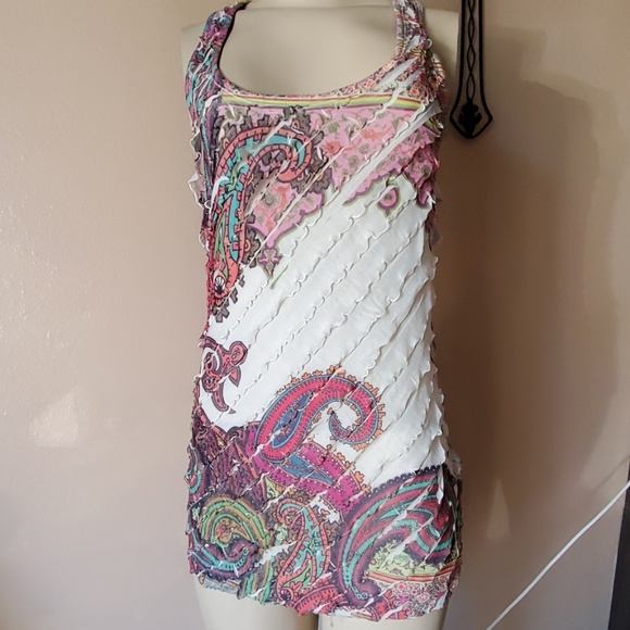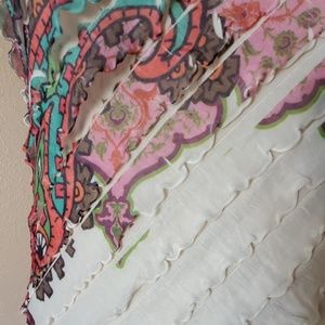 Cute paisley printed top. It appears the tag was printed on. Size S., stretchy material.