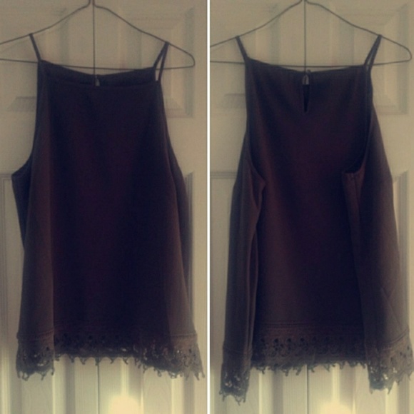 Only worn once, lace detailing along the bottom, the back has a key hole and button. Still in new condition. Also my example picture isnt the best example because my chest is too big for the shirt now, but it gives at least an idea of how it fits. Let me know about questions. 💕