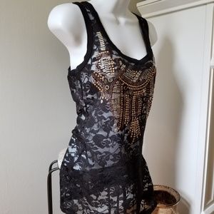 Black lace Daytrip top with metallic colored rhinestones. Purchased from buckle. Like new size medium.