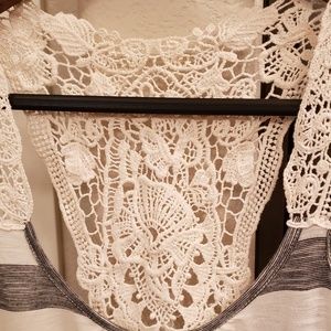 Tank top with Crochet backing. Worn a couple of times and in excellent condition. Super cute summer top!