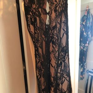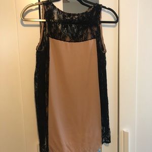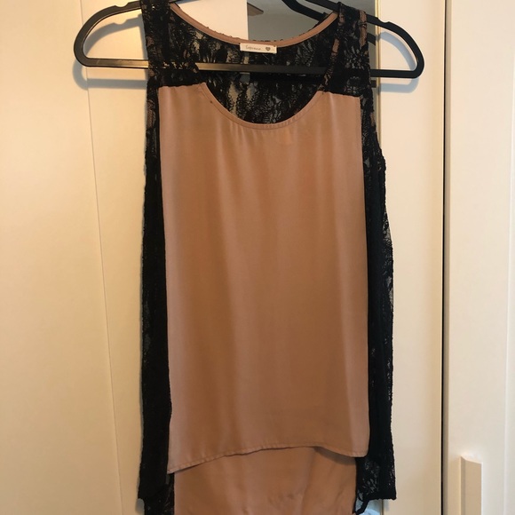 Cream nude tank top with lace sides High to low cut Black lace sides are see through
