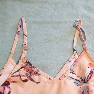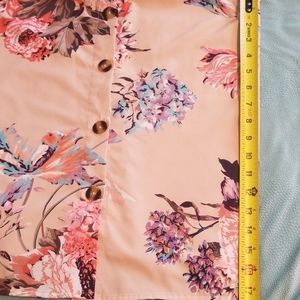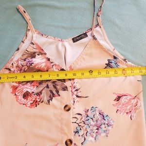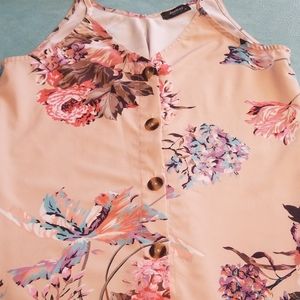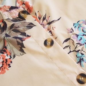 Button down Tan with large flower pattern Adjustable straps 65% cotton. 35% polyester