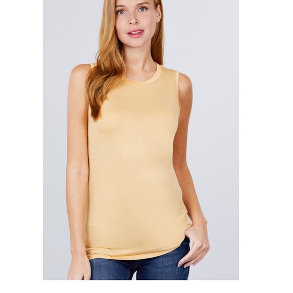 SLEEVELESS ROUND NECK RAYON SPANDEX KNIT TOP 95% Rayon 5% Spandex