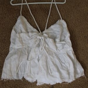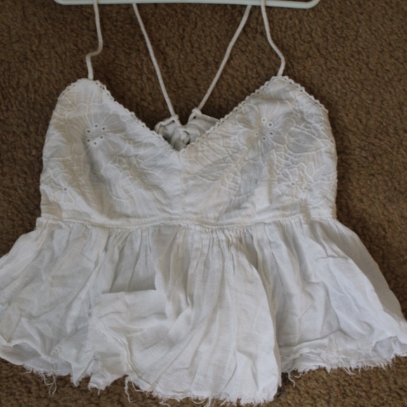 hard to take picture of it on the ground because it is so flow! But it is super cute and has an adorable scrappy back with a very cute floral design on the chest! Can be dressed up with a skirt or dressed casually with shorts or jeans! Super comfy.. Tagged as L but could fit any size really (S/M)