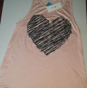 Medium Pink Tank Top with Black Heart in Center. Brand New.