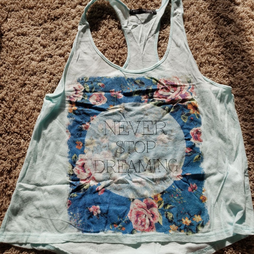 Racerback flowy cropped tanktop. 'NEVER STOP DREAMING'. Great conditon.