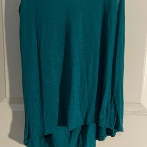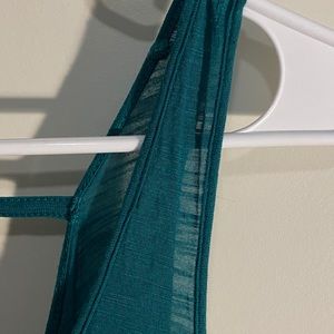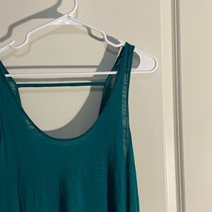 Dark teal - cotton - swoop back - very cute tank! this tank is a perfect go to for any outfit and mostly all occasions! The swoop back adds a very cute detail to an outfit and the flow of the tank is very flattering