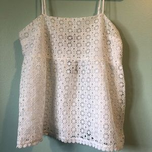 Sheer tank top with eyelet overlay. Perfect for summer or throw a cardigan/blazer over it to bring it into fall.