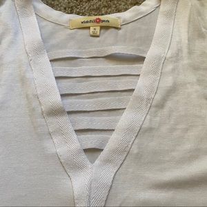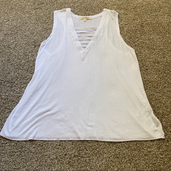 Never worn! Very flowy and comfortable material for the warmer months! There is a small stain in the bottom (refer to the fourth picture) that was there when I bought it.