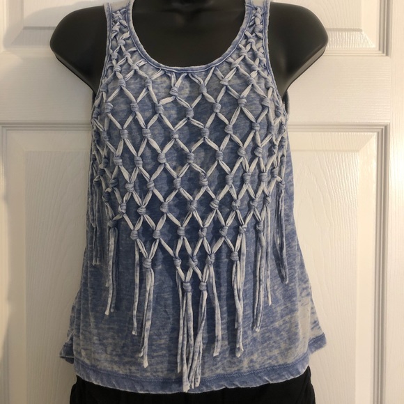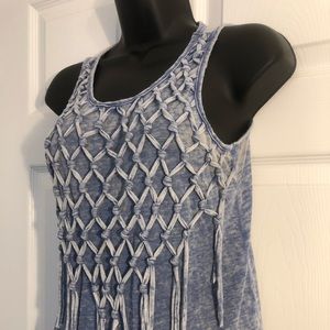 Blue fringe tank top