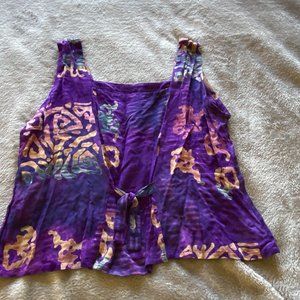 Super fun and colorful tank top. It's has splits near the bottom and ties in the back. Measures 18.5" from armpit-to-armpit and 21.5" shoulder to hem. Closet clear out! Firm price. Bundle with other items to receive a discount. Thanks for looking!