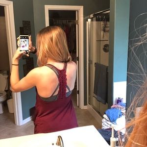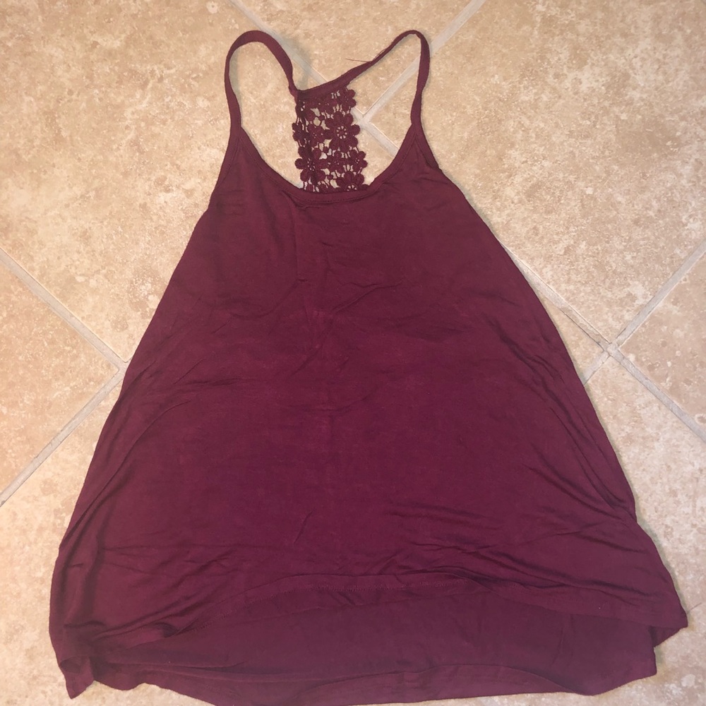 Maroon colored flowy tank top. I believe I got it from Aeropostale but can’t remember for sure.