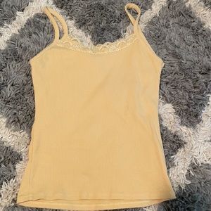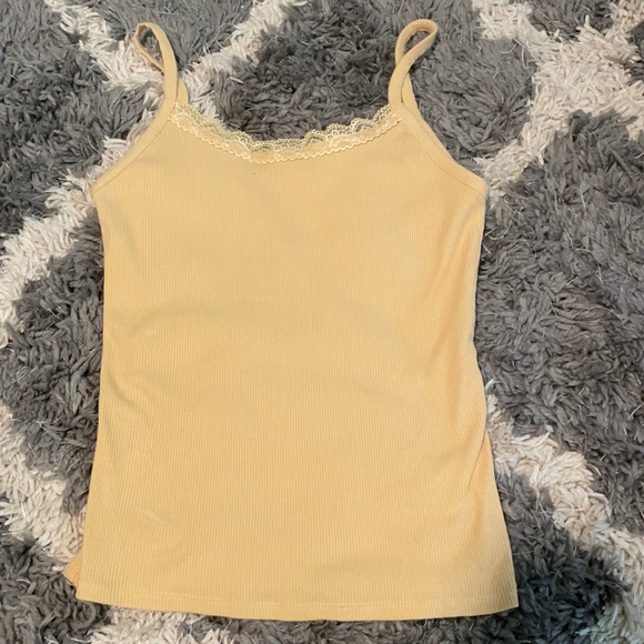 This is a pale yellow size small tank top. It is a little cropped and super thin. Never worn, just took the tags off! Super cute just not the right color for me!