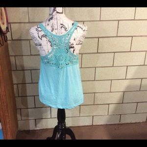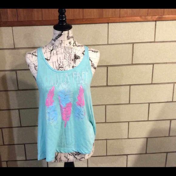 No Boundaries Graphic Tank Top, (Says Wander Free) , XL, Crochet on the backside, turquoise.