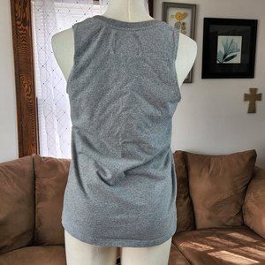 Super cute, soft, sleeveless (spell out) Euka Italy Style gray tank top. The size tag is not readable but I would say a size S/M. Please refer to my measurements to ensure a proper fit. This top is in otherwise great pre-owned condition with normal wear.