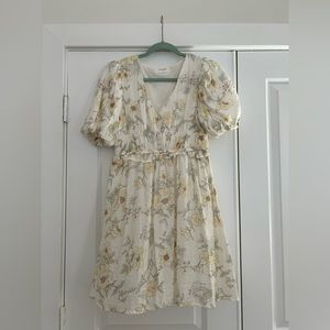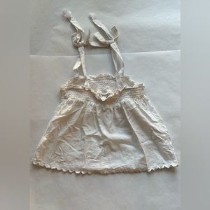 White tank top with tasseled tie straps and scalloped hem. Excellent condition, flowy fit.