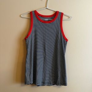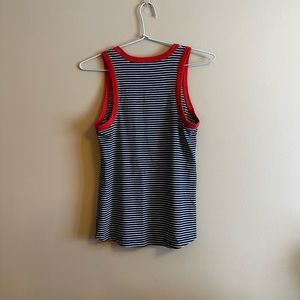 Old navy tank top. Stripped blue and white with red edging on collar and arm holes. Barely worn, perfect condition.