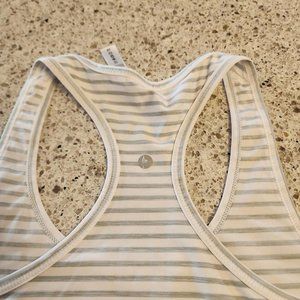 White and gray striiped tank top.