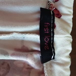 Pullover with a gathered neckline that can be stretched for less gathers.