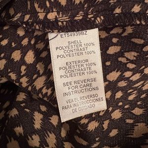 Black and tan silk/polyester with lace on front. It ties up like shoe lace in the front and slightly revealing.