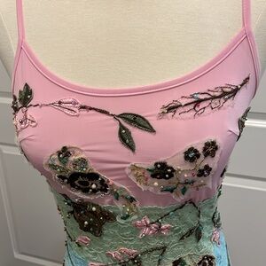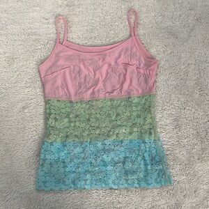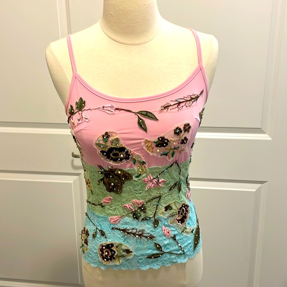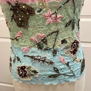 This beautiful tank top was purchased in a boutique shop in Los Angeles. Tag says large, but I am a small and it fit me perfectly.