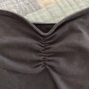 Very flattering neck line. Cropped length. Well loved but still in great shape!