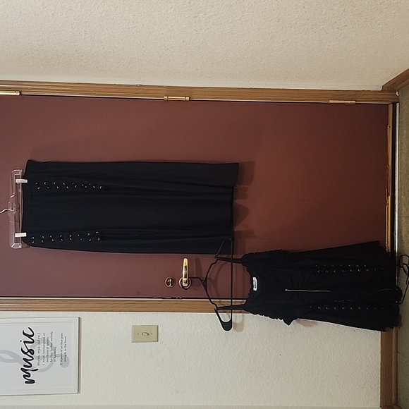 4X black long skirt zipper back shoestring ties TWO SPLITS on front on each side