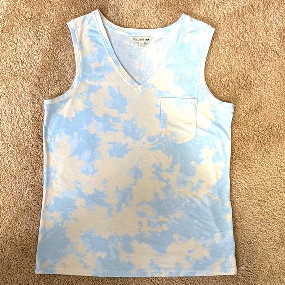 🟣This Toad and Company brand. tank top features a refreshing blue and white tie-dye, perfect for a summery vibe. With its sleeveless design and soft fabric, it offers comfort and style for casual outings.