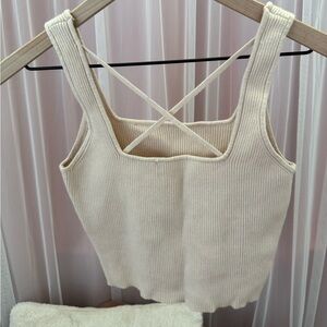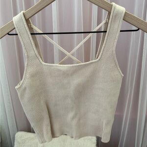 All Row Beige/ Cream Tank Top Size : M Criss cross string design on back