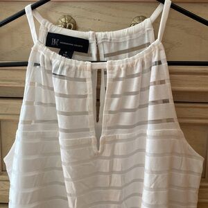 INC International Concepts dressy razor back style tank top. Keyhole button back with elastic waist hem, see through upper neck and lined down the torso. Size Small in while, great condition