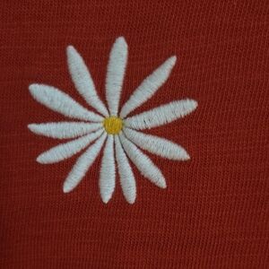 Sleeveless knit tank with embroidered daisy motifs. Lightweight, breathable fabric. Casual, feminine style perfect for layering or warm days.