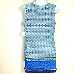 Tank Top Blue Mini Sundress Or Tunic Stretch Geometric Print New