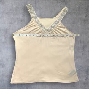 Tank Top Large Cream with Sequin Embellished V Neckline Work To Weekend Shirt
