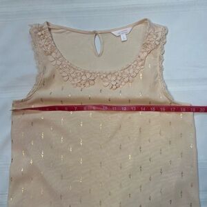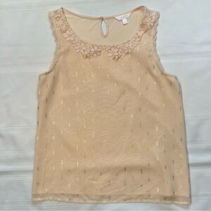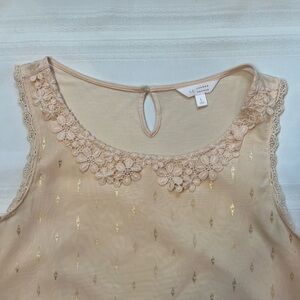 Tank Top Lauren Conrad Floral Crochet Lace Trim Metallic Gold Print Sz L EUC