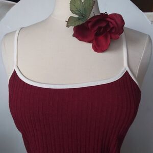 Tank Top NEW Burgundy Maroon Red Ribbed Camisole Spaghetti Straps White …