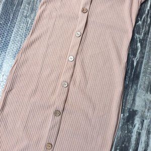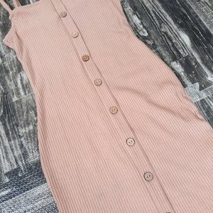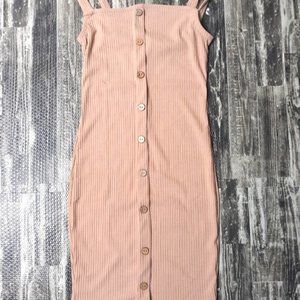 The perfect Nude Mini Dress for you sunny day needs. This tank top dress has small wooden buttons on the front with a 2 way stretch which allows it to fit your curves perfectly. Sizes available are S, M, L.