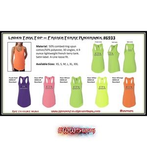 Features: Women's french terry tank tops racerback model #6933 with "The Wickeds" logo on the front, WW logo on the back between the shoulder blades.