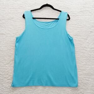 Tank Top Size 1X Aqua Luxury Feel Soft Girl Casual Chic Vacation Ribbed Travel