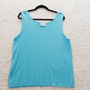 Louis Dell Olio, Whisper Knit, Aqua Tank, Sleeveless Knit Top, Scoop Neck, Plus Size 1X, Cotton Feel, Lightweight Knit, Soft Girl Style, Capsule Piece